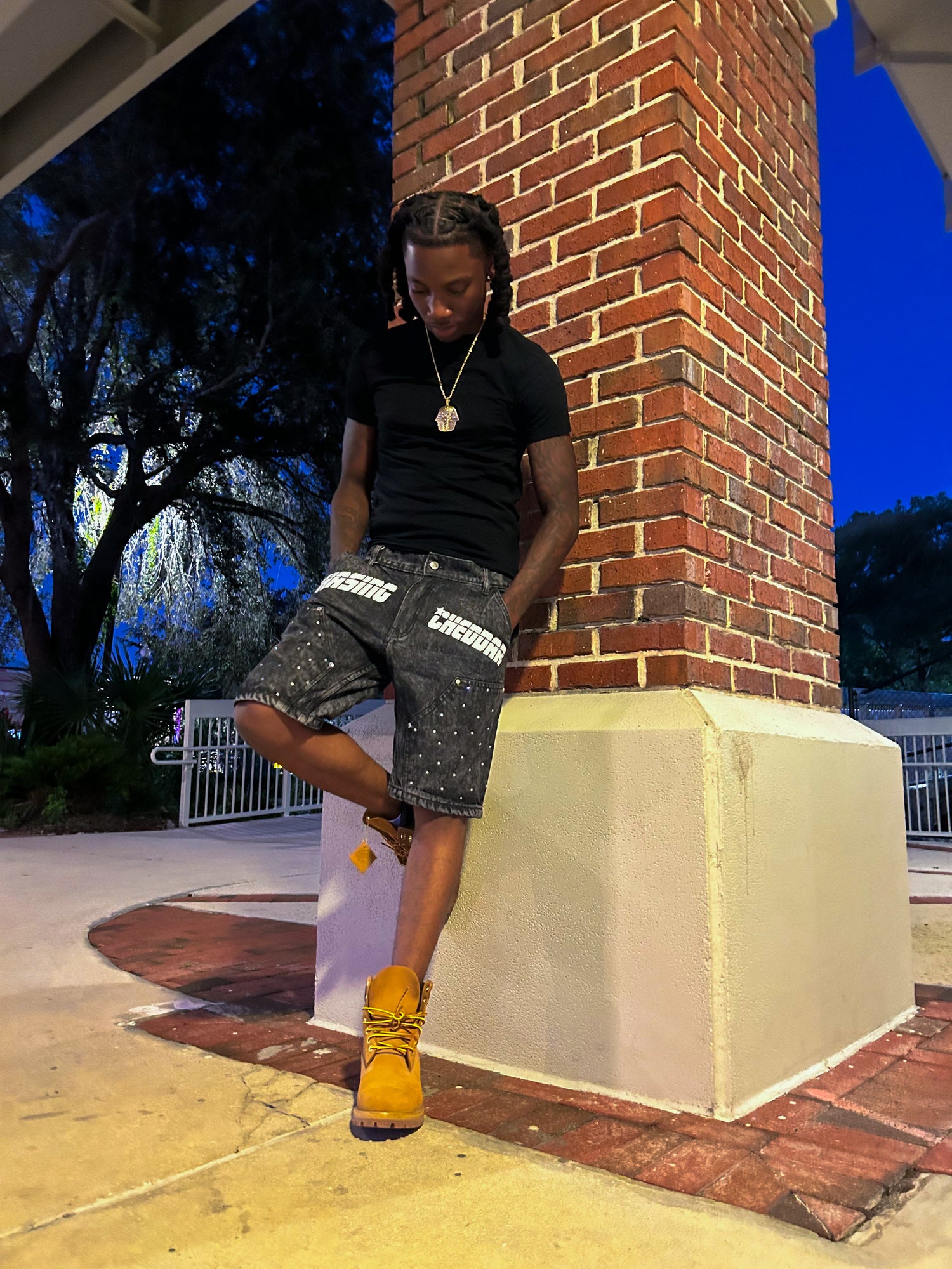 The CC Rhinestone Jorts bring bold energy to the streets — where luxury meets motion.